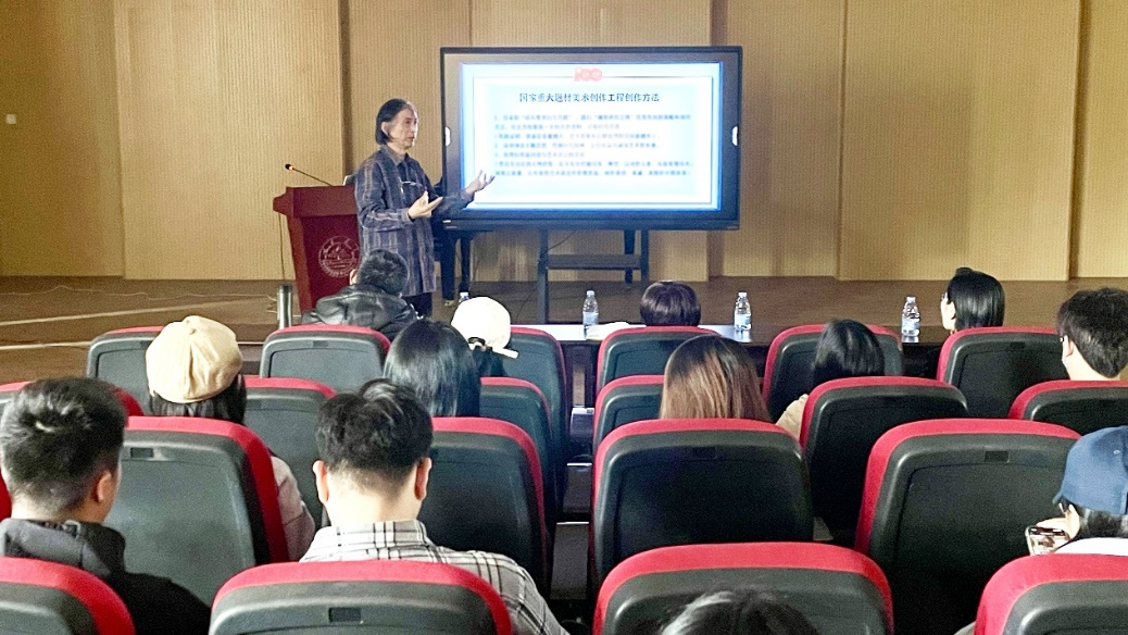 讲座中,戴政生教授深情回顾了自己在创作版画《大兴调查研究之风》过程中的心路历程。他详细介绍了作品的创作背景、灵感来源以及国家重大题材美术创作工程制作方法,让在场的师生们深刻感受到了艺术创作的艰辛与喜悦。同时,戴教授还结合建党百年的历史背景,阐述了艺术作品在传承红色基因、弘扬时代精神方面的重要作用。